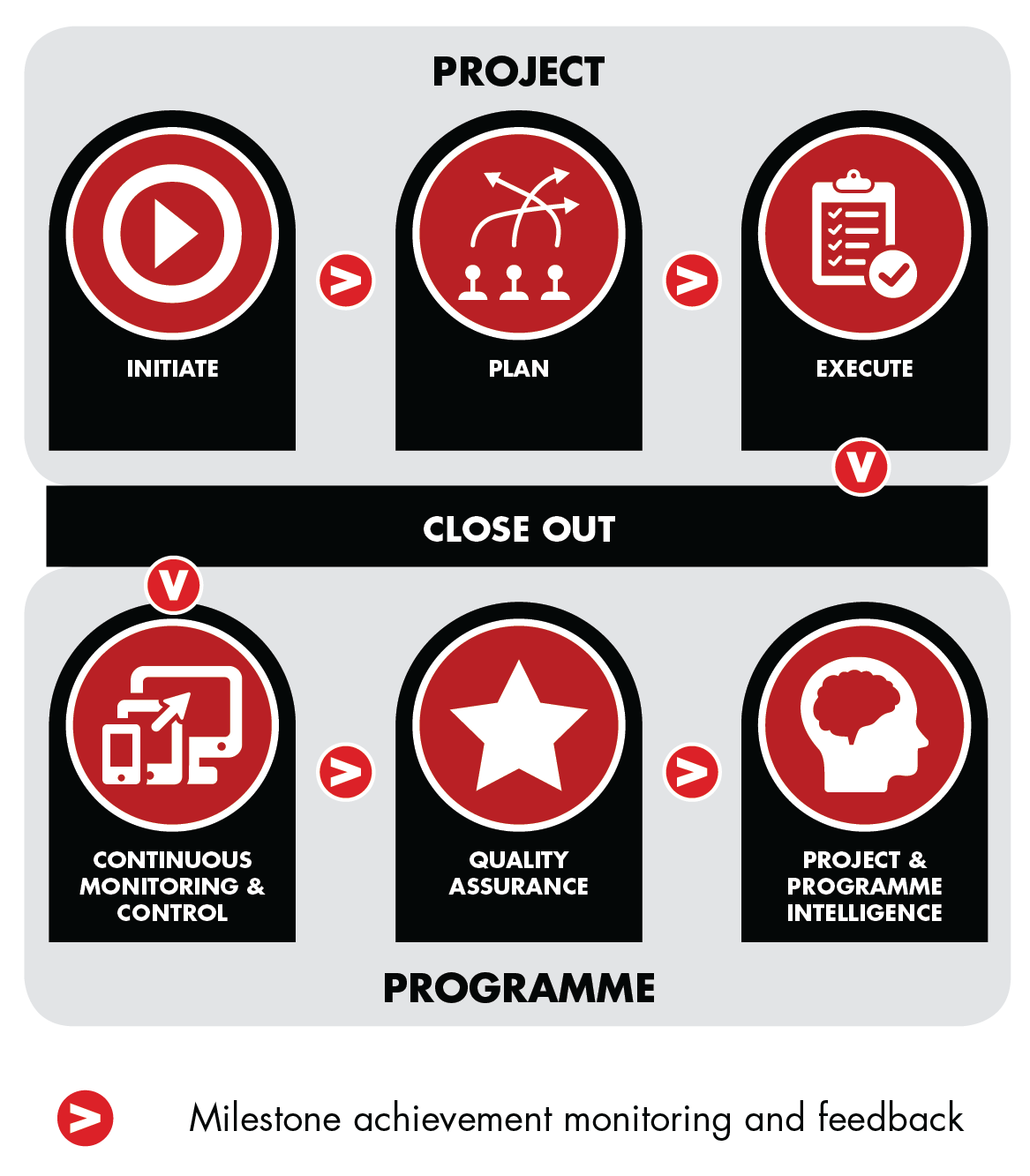RPPO considers a project and a programme as part of the same continuum of effective and sustainable delivery. Many projects fail due to the segmented nature of their implementation and management. After close-out, a project is frequently left isolated; with no ongoing monitoring or quality assurance. Our approach delivers the assurance to organisations and clients that their endeavours will have a lasting and meaningful impact.